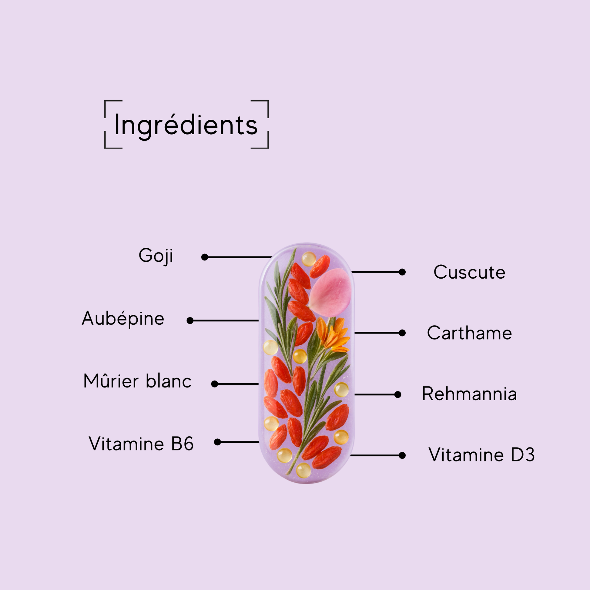 Pour des résultats durables, nous recommandons de suivre une cure continue d’au moins 3 mois, à renouveler si nécessaire.